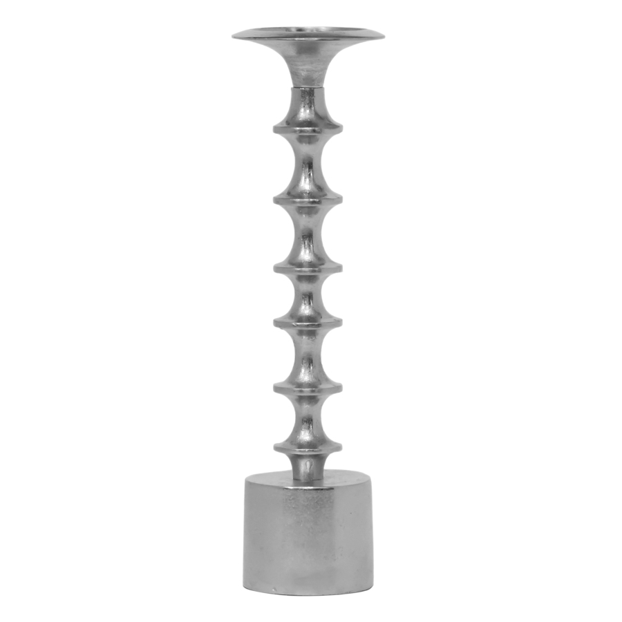 Een kandelaar in de kleur zilver van raw aluminium speciaal voor uw interieur geselecteerd.