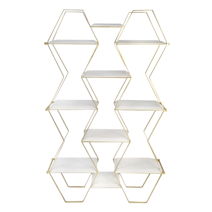 Een planken kast in de kleur bras van ijzer speciaal voor uw interieur geselecteerd.